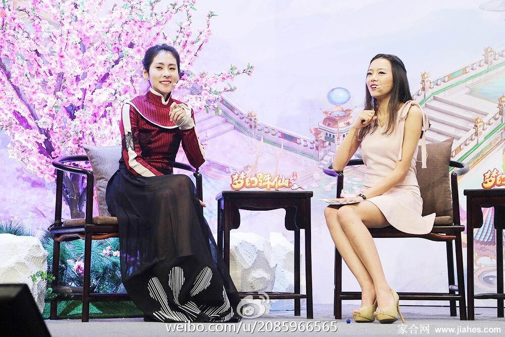 骆歆侧身聆听选手回答,专注神态与优雅身姿并存